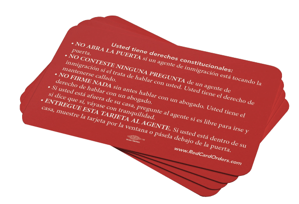 Some organizations are selling packs of Red Cards (printed, cut, and ready to distribute), but organizations such as the Immigrant Legal Resource Center (ILRC) and other legal aid groups provide Red Cards for free, both in physical and digital formats.
