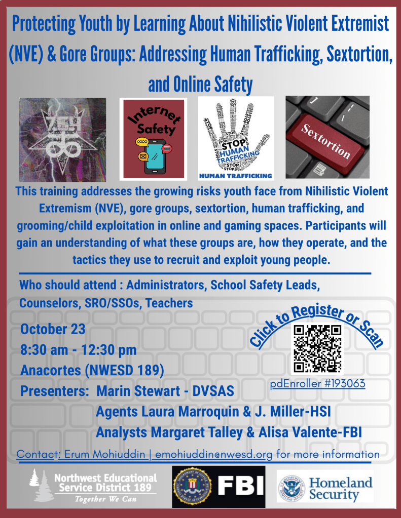 This dynamic training will dive into the alarming rise of Non-Violent Extremism (NVE), “gore” groups, sextortion, human trafficking, and child grooming/exploitation—issues increasingly affecting youth through gaming platforms and social media.