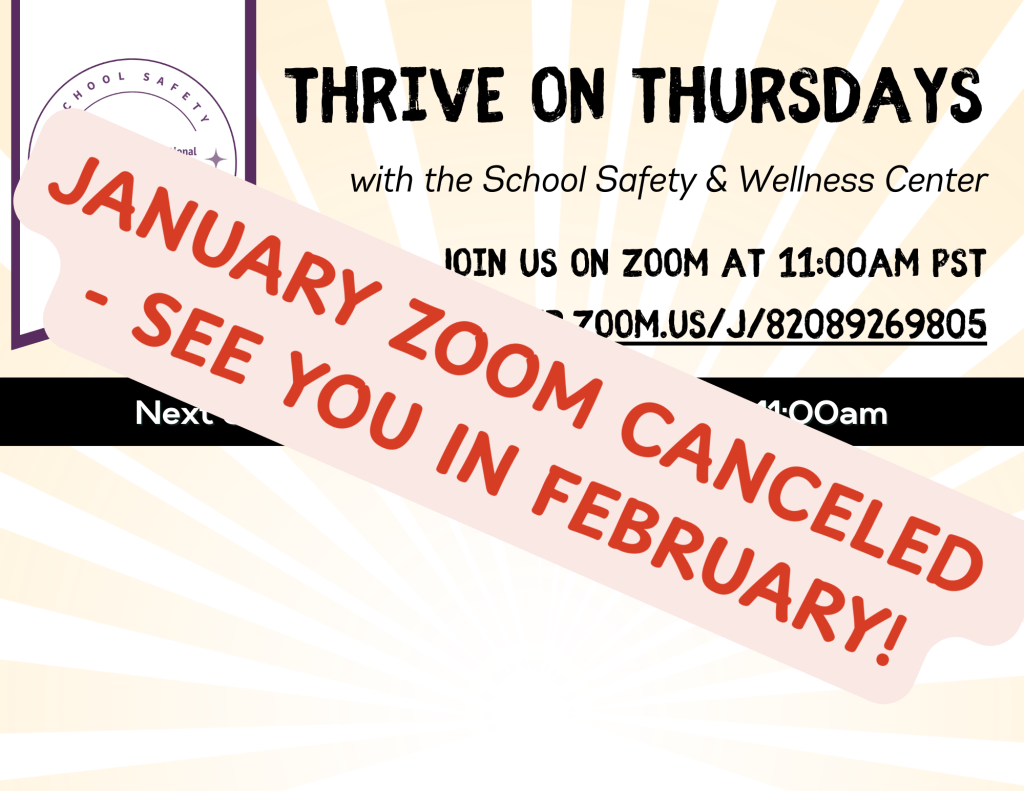 Thrive on Thursday will resume on February 19 at 11:00 a.m., and this session will feature a special guest and a preview of an important upcoming training opportunity.