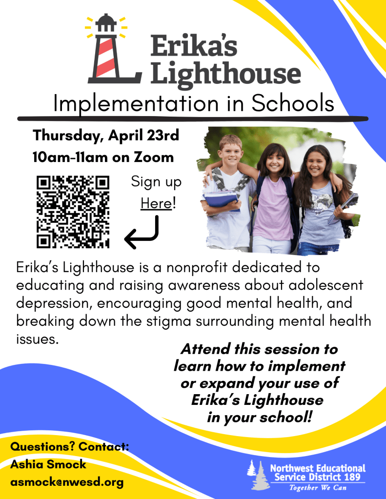 You are invited to join a one-hour Zoom session on April 23rd from 10:00–11:00 AM to learn how to bring meaningful, student-centered mental health support into your school community through Erika’s Lighthouse.